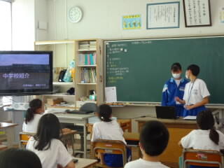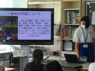本日で,一条中学校からの1週間の宮っ子チャレンジが終了です。本日は,8名の生徒が2名ずつ高学年のクラスに入って「中学校紹介」を行ってくれました。それぞれの生徒がクロームブックなどを使いながら分かりやすく説明をしてくれました。小学生も大喜びでした。