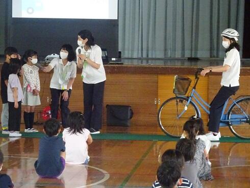 本日,交通安全教室でした。自転車の乗り方などを低学年,中学年,高学年に分かれて,体育館で授業を受けました。