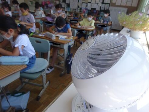 本日,朝から気温が上昇し,猛暑になりました。熱中症警戒アラートが発令され,子供たちは冷房のきいた室内で学習を進めています。教室には,エアコンの他に,サーキュレーターを使い,できるだけ暑さから逃れるようにしています。