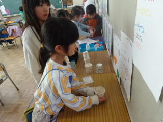 今日の3時間目,1,2年生の生活科「おもちゃランド」を行いました。2年生が作ったおもちゃをお店に出し,1年生がお客さんとなって遊ぶものです。楽しいおもちゃがたくさんありました。
