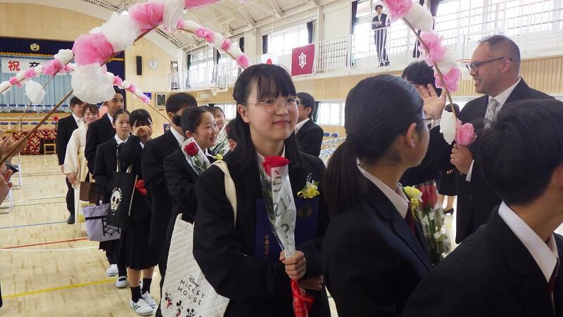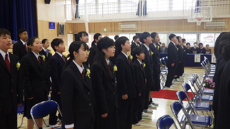 少し大きめの制服に身を包んだ卒業生たちは,真剣な表情で一人一人が卒業証書を受け取りました。