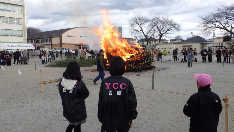 このような行事を続けていくことは,けして容易なことではありません。朝早くから準備していただいた地域の方々と一緒に火を囲んで,日本の伝統や「ふるさと西原」の温かさを実感するひとときとなりました。