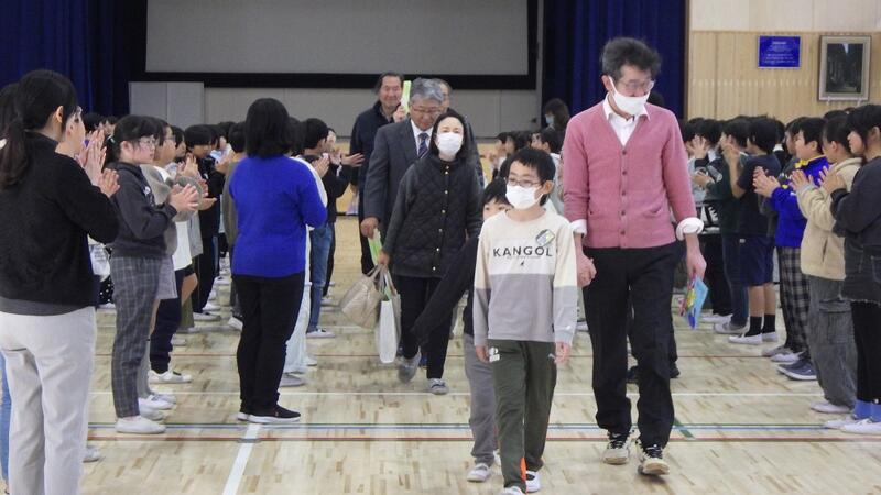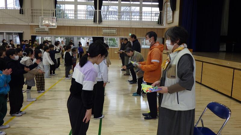 「感謝の会」では,児童たちが心を込めて書いたメッセージと全校生による歌のプレゼントを贈りました。