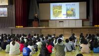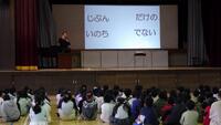 校長先生から、タンポポが、自然の中でたくましく命をつなぎ、鮮やかな黄色の花を咲かせることから、「いのち」を大切にし守るために、考え、行動しようというお話がありました。