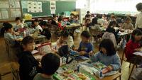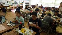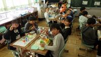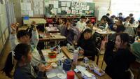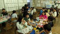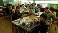 学年に応じて「ねらい」があり、高学年になると「栄養のバランスを考えた献立作り」や「一品でも自分で調理」となります。子供たちは、「うんめ~」「○○だ!」「見て 見て」「このおかずの作り方、知ってる?」などと楽しそうでした。「おにぎりを自分で作った」「おかずをお弁当箱につめた」「このおかずは自分ひとりで作った」などと教えてくれる児童もたくさんいました。