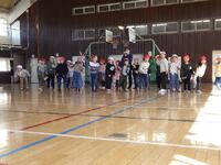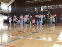 2月25日(水) ロング昼休みは、「6年生を送る会」第2弾。「ありがとう共遊」です。あいにくの雨模様のため、予定を変更して室内でできる遊びを共遊班ごとに楽しみました。なんでもバスケット、イスとりゲーム、しんげん地などをして遊びました。