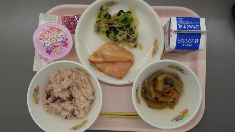 進級のお祝いで、赤飯が出ました。蒸したてでしっとりしていて、おいしかったです。温かい祝福の気持ちまで一緒に味わっているような感覚になりました。