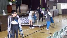 どのように配置したらよいか考えながら、率先して働いていた6年生。さすが本校の児童です!!