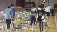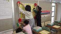 4月9日(木)5時間目に、6年生が、明日の入学式準備をしました。