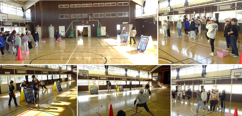 本日の業間は,1年生と4年生を対象に,体育館でストラックアウトを行いました。的をめがけてボールを投げる競技です。コントロールと集中力が求められます。短い時間でしたが,たくさんの児童が参加しました。