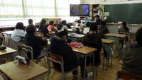 1月13日(火),3年生を対象にそろばん教室を実施しました。講師は,本校同窓会長の 亀和田公一様です。最初に学年全体で講話がありました。そろばんの歴史や世界のそろばんについて,また,実際に訪問された世界各国での体験談などについてお話をいただきました。その後各教室で,実際にそろばんを使い基礎からご指導をいただきました。亀和田様,大変お世話になりました。