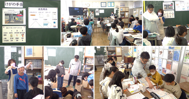 授業の様子 投稿日時 : 14:43 錦小学校管理者 養護教諭が,5年生の保健「けがの手当て」の授業を行いました。いざという時,救急用品や身近な物を用いて応急処置をする方法を分かりやすく説明しました。特に,三角巾がいろいろと応用ができることを実演を交えて説明する場面では,身を乗り出して話を聞いていました。 {{options.likeCount}} {{options.likeCount}}