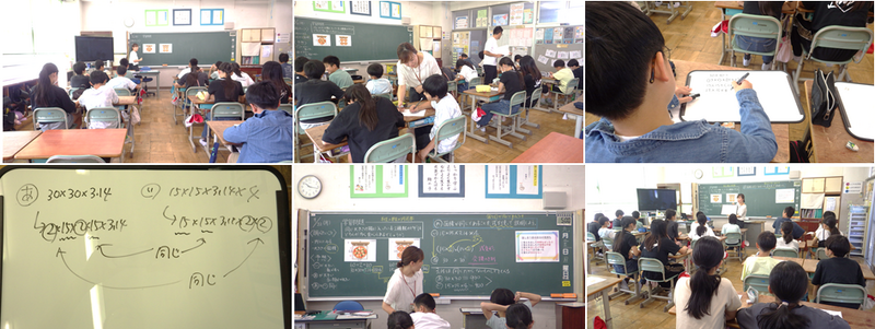 6年生算数,面積の授業の様子です。校内研修の一環で,一人一授業を実施しています。お互いに授業を公開し,気軽に意見交換をしながら研修を進めていきます。今日の授業では,日常生活との関連を大切にしながら,数学的な考え方を深めていました。