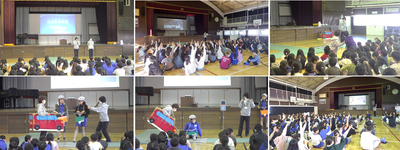 宇都宮市生活安全課の皆様による,交通安全教室です。2校時は下学年,3校時は上学年で実施しました。主に歩行や自転車走行時のルールやマナーについて学びました。児童はクイズに参加しながら,安全の確認ができたようです。また,自転車走行時のヘルメット着用の有無の違いについての実験や,LRTについてのクイズもありました。講師の皆様,お世話になりました。