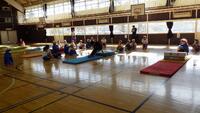 今日は、体育の「マット運動」の研究授業を行いました。安全に運動ができるように気を配りながら、理解しやすいように見本を見せたり、よくできている児童に「いいよ!」と声をかけたりしながら、1人1人に目を向けていました。子供たちは、飛び前転や開脚前転などの技を一生懸命に練習していました。