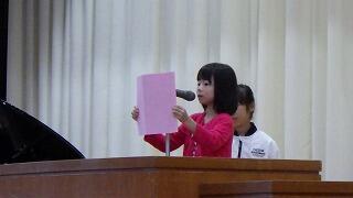 始業式では1年生と4年生の代表児童が,「2学期に頑張りたいこと」についての作文発表をしました。