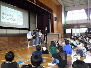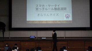 そして,始業式後には,「スマホ・ケータイ宮っ子集会」を行いました。宇都宮市では,10月20日(月)~26日(日)を「スマホ・ケータイ宮っ子ルール徹底週間」としています。集会では,児童指導主任の先生と運営委員会の代表が中心となって,「スマホ・ケータイ宮っ子ルール共同宣言」の再確認をしました。「徹底週間」を機会に,ご家庭でも日頃のスマホやネットの使い方について,ぜひ話し合ってください。