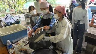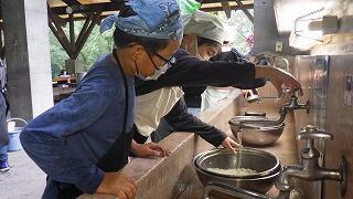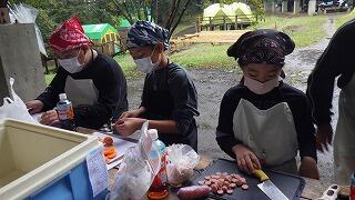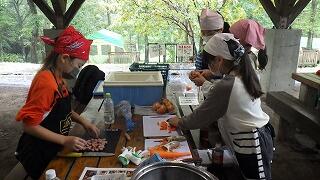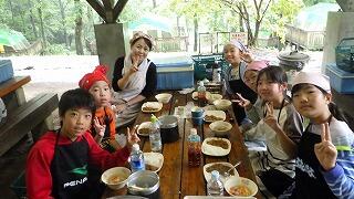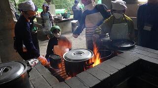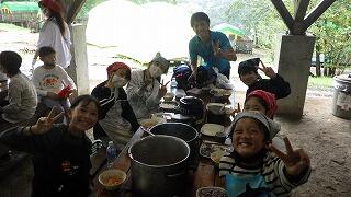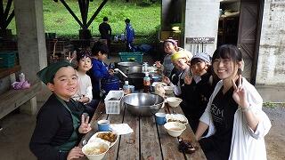 3日目の活動は,野外炊飯。班ごとに昼食のカレーを作りました。火起こしは,昨日体験しているのでスムーズにできました。カレー作りでは,野菜の皮むきや小さく切り分けるときに苦労していましたが,自分たちで作ったカレーの味は,格別だったようです。