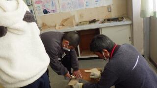 4年生の図工「カクカク板を組み合わせたら」の学習にあたり、のこぎりボランティアの皆様にご協力いただきました。