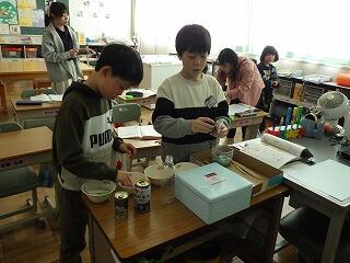 前時の予想をもとに,磁石につくかどうか何度も試しながら実験していました。銀色の物でも素材によって磁石につかないことがあるということを知り,驚いていました。今回の授業を通して,鉄は磁石につくこと,金属でも銅やアルミニウムなどは磁石につかないこと等が分かりました。