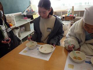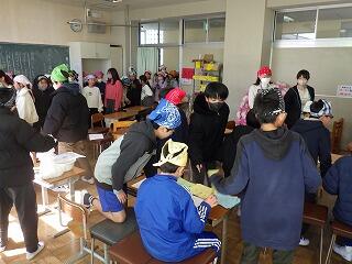 2月19日(木),20日(金)の昼休みに,学校給食週間の一環行事として給食員会主催の豆つかみ記録会が開かれました。