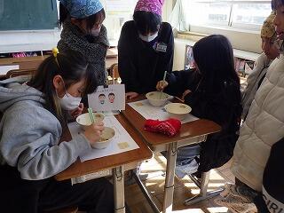 子供たちは,30秒間にどれだけ多くの大豆や小豆をお皿にのせられるかどうかにチャレンジしました。真剣な表情で,箸を上手に使って,たくさんの豆をお皿にのせていました。のせられた豆の数によって賞状がもらえて,みんな嬉しそうでした。