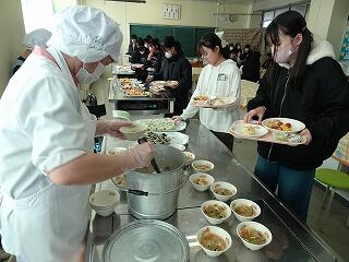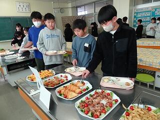 3月2日(月)に6年1組,5日(木)に6年2組がバイキング給食を行いました。