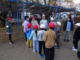 前回の9月の縦割り班遊びは,残暑が厳しかったため室内での活動となりましたが,12月4日(木)は,校庭で行うことができました。