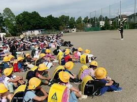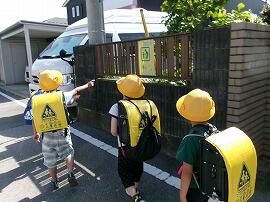 5月17日(金),スクールガードチーフであり地域協議会長の鈴木美千男さんのお話を聞いた後,安全対策委員さんが各下校班についてくださり,「こども110番の家」を確認しながら下校しました。