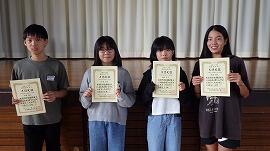 10月17日(木),2学期始業式の前に表彰を行いました。今回は,スポーツ・文化・芸術に関する表彰について,体育館・校長室でそれぞれで行いました。