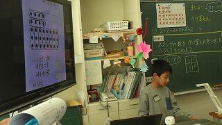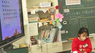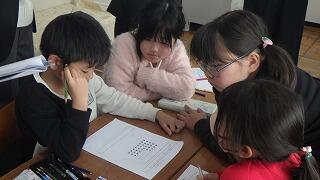 4年生の授業では,ペントミノのどこに正方形1つをつなげると立方体の展開図になるかを見つけ,それを見つけるコツについて考えました。面の位置関係に着目すると,展開図を考えやすいということが分かりました。授業中には使わなかったペントミノがあと9種類あると聞き,子供たちは自主学習でやりたいと意欲的でした。