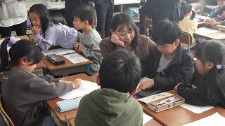 地域のボランティアの方々にご協力をいただき,「羽根つき」や「竹とんぼ」「こま」など,様々な昔遊びを体験しました。子供たちは,目を輝かせながら楽しむ姿が見られました。これからも,日本の昔からある遊びや文化に親しむ機会をつくっていきたいと思います。