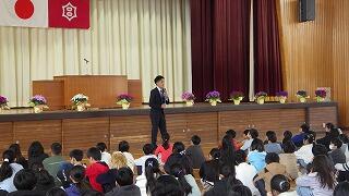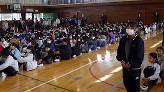 会では,児童代表による感謝の言葉に続き,花束と手紙を贈呈し,子供たちの思いをお伝えしました。会場は終始温かな雰囲気に包まれ,最後は大きな拍手で本橋さんをお送りしました。