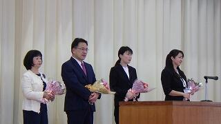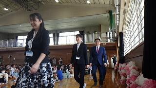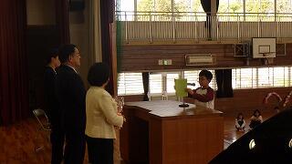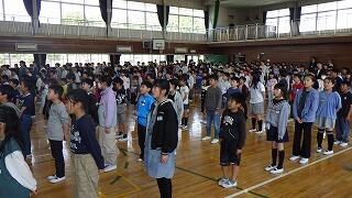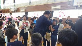 4月14日(火),離任式を行いました。代表児童からの花束贈呈後,異動された先生方お一人お一人から心のこもったお言葉をいただきました。話を真剣に聞いている子供たちの目には,涙がいっぱい。代表児童のあいさつに続き,校歌のプレゼントをしました。思い出に残るようにと心を込めて歌った校歌は,体育館中に響き渡りました。