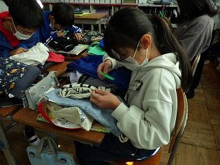12月1日(月)3校時,一人一授業の一環として,5年1組で家庭科「ミシンで楽しくソーイング」の授業が行われました。