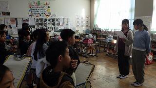 給食委員会の子供たちによるイベントの1つは,紙芝居です。朝の学習の時間にクラスを巡回して,「しもつかれ」の紙芝居を行っています。子供たちは,真剣な表情で見入っていました。