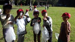 10月17日(金),校外学習で秋を見付けに中岡本緑公園へ行きました。子供たちは,たくさん落ちているどんぐりに驚き,眺めたり拾ったりと,興味深々に探していました。栗や松ぼっくりを見付けて嬉しそうにしている姿が印象的でした。この後,拾った秋の木の実などを使って,秋のおもちゃを作る予定です。素敵な作品が作れると良いですね!
