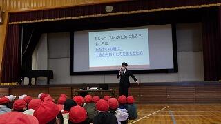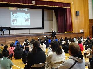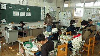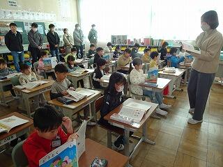 給食の時間には,各校が作成した絵本の読み聞かせ動画が流れ,子供たちは美味しい給食を食べながら絵本の世界に浸っていました。