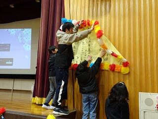 最後には,6年生からのメッセージと歌のプレゼントがあり,会場は温かい気持ちに包まれました。みんなの思いがあふれる、素敵な「6年生を送る会」となりました。