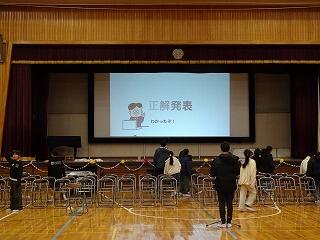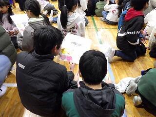 縦割り班でクイズを楽しんだ後は,1~5年生からメッセージカードやスライドショー,歌のプレゼントがありました。スライドショーでは懐かしい写真も映し出され、あちらこちらから笑顔がこぼれていました。