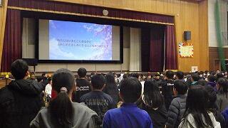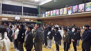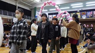 学年休業のため延期となっていた6年生の授業参観が,2月12日(木)に行われました。前半は,親子活動として「コサージュ」作りを行いました。後半は,体育館に移動し,6年生が自分たちの成長を伝えるとともに感謝の思いを込めて歌を披露しました。体育館には,温かな拍手と感動があふれていました。