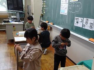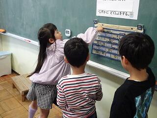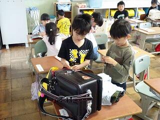 1年生が入学してから,もうすぐ2週間です。入学式の次の日から,6年生が1年生の各教室で,朝の準備のお手伝いをしてくれています。6年生のおかげで,今では自分一人でも,素早く準備ができるようになってきています。