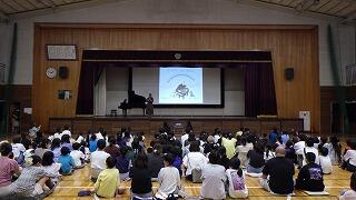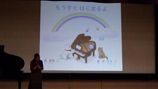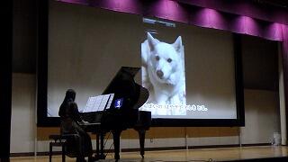講師の先生をお招きし,お話に合わせたピアノ演奏を聴きながら犬や猫など動物の命に関するスライドショーを鑑賞しました。親子で動物の命やペットを飼うことについて考えるひとときとなりました。