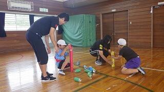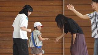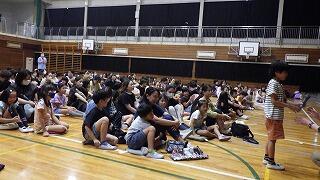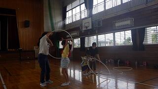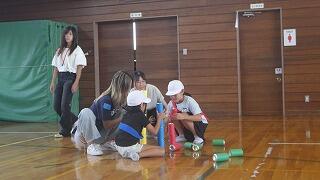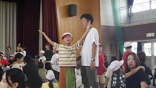 9月26日(金)の5校時に、2年生の親子ふれあい活動として「ミニ運動会」を体育館で行いました。障害走リレーでは、保護者と児童が手を繋ぎながら協力して絆を深めました。児童は「フラフープくぐり」「缶つみ」などを楽しみながら、普段の学校生活とはひと味違う姿を見せてくれました。「じゃんけん」のコーナーでは、校長先生とじゃんけん対決をする貴重なシーンもありました。子供たちの笑顔がたくさん見られました。