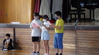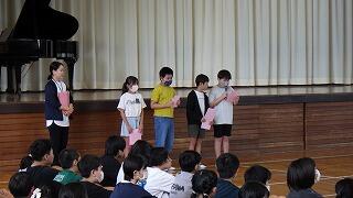 9月25日(木),コロナ禍後初の音楽集会を体育館で行いました。運営委員会の子供たちが司会を務めました。1回目は,2・4・6年生が発表しました。