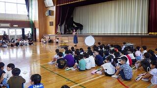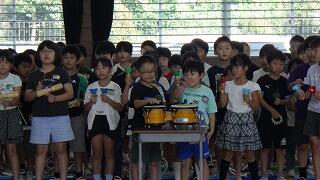 2年生の発表は,「森のたんけんたい」。1番は歌と手拍子,2番は歌と打楽器,3番は合奏とバラエティに富んだ演奏に,子供たちから歓声が上がりました。元気いっぱいの歌声,多くの種類の打楽器の音色が響き,とても楽しい演奏でした。