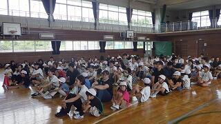 学校で出発式を行った後,宇都宮市冒険活動センターに向かいました。子供たちの顔からは,今から始まる冒険活動教室に,わくわくうきうきしている様子が伝わってきました。冒険活動センター到着後,まず,小学校2校合同の入所式を行いました。担当は,岡本北小学校です。司会進行,代表児童拶を堂々と務めることができました。