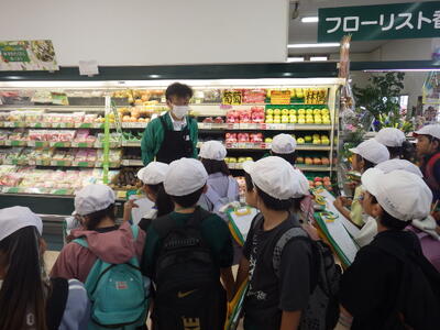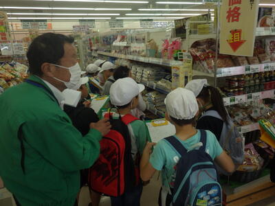 スーパーマーケット見学(3年生 10月9日) 投稿日時 : 10/17 岡本西小学校管理者 「サンユー」奈坪店様の協力のもと、社会科校外学習を実施しました。 お忙しい中、ご協力いただきありがとうございました。 子供たちは、学習プリントいっぱいにメモをとっていました。 たくさんの発見がありました。