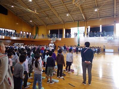 最後に全校生で「YUME日和」を合唱しました。子どもたちの素直で明るい歌声が会場に響き渡り,心に残る集会となりました。