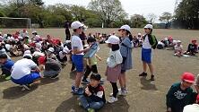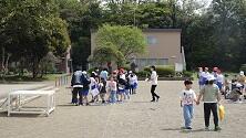 4月13日,全校生が登校班別に集まり,班のメンバーや集合場所,集合時刻,並ぶ順番の確認をしました。上級生がしっかり面倒をみて,優しく声を掛けていました。1年生も早く慣れて,安全に登校してほしいと思います。